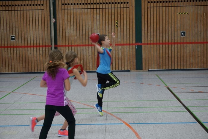 Unter dem Motto „Lauf Dich frei! Ich spiel Dich an!“ hat Simon Stimmler, unser Trainer der weiblichen C-Jugend, einen ganzen Vormittag mit den Kindern gestaltet. Zur Erlangung des AOK-Spielabzeichens absolvierten die Kids dabei sechs Koordinationsstationen. Mit vollem Eifer wurden diese in 4 Gruppen durchlaufen. Im abschließenden Aufsetzer-Handball hat sich dann das Talent im Umgang mit dem Ball bei vielen Mädels und Jungs gezeigt. Einige haben sich richtig geoutet, was sie bei uns bei den Minis schon gelernt haben. Und vielleicht haben ja doch noch einige mehr Appetit auf Handball bekommen.